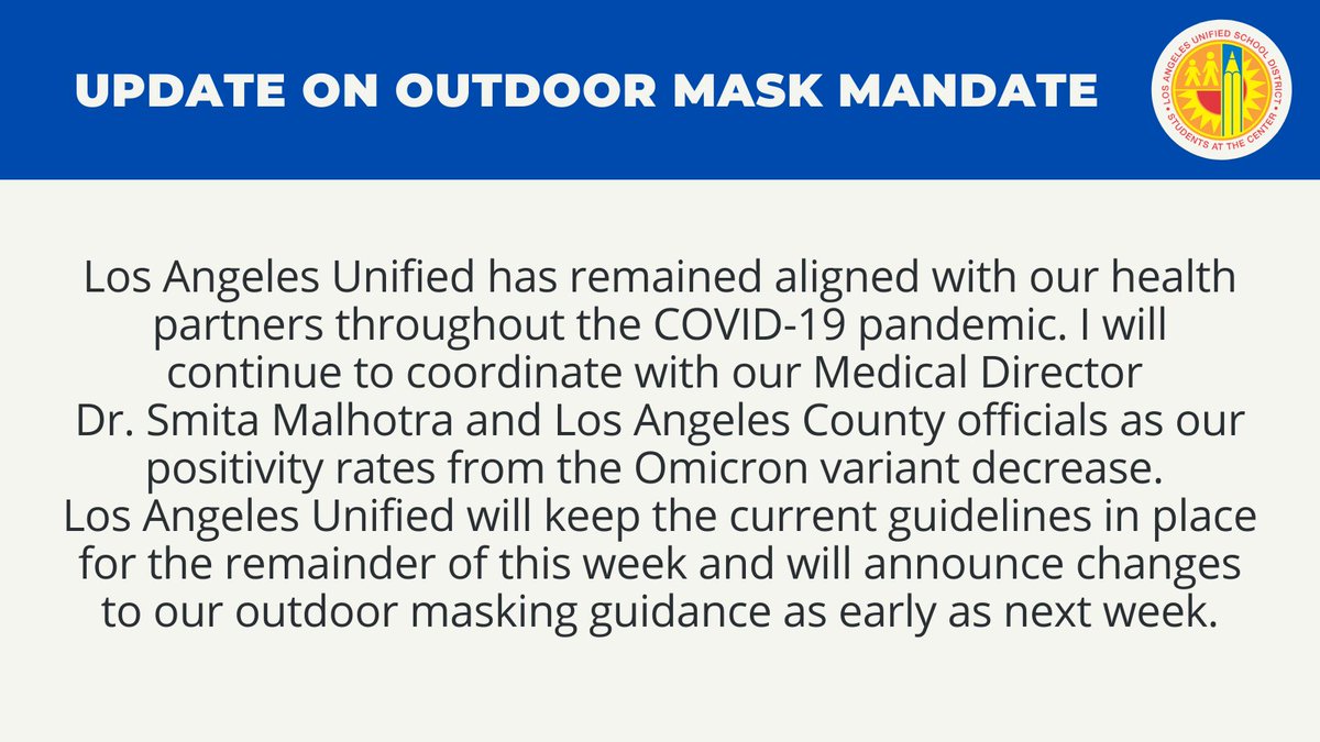 Картинки по запросу "los angeles mask mandate update" Картинки по запросу "los angeles mask mandate update" Los Angeles County reinstates mask mandate as Delta... - CBS News Los Angeles - Los Angeles is the first county in the nation to require masks again. The mandate is for indoors, and it's indefinite. The masks came back Sunday, one month after California dropped restrictions, claiming the state's COVID recovery was on track. But, now, a speedbump. Los Angeles Expected To Ease Indoor Mask Mandate This Week... Los Angeles County is one of the country's final mask mandate holdouts, despite many states—including California—gradually lifting coronavirus restrictions as infections fall. CMV: The reinstated Los Angeles mask mandate is a bad move Background Los Angeles reinstated its mask mandate at 1159 yesterday. All people regardless of their vaccination status are … LA reinstating its mask mandate has essentially decreased any chance of the unvaccinated choosing to get the vaccine out of their free will.