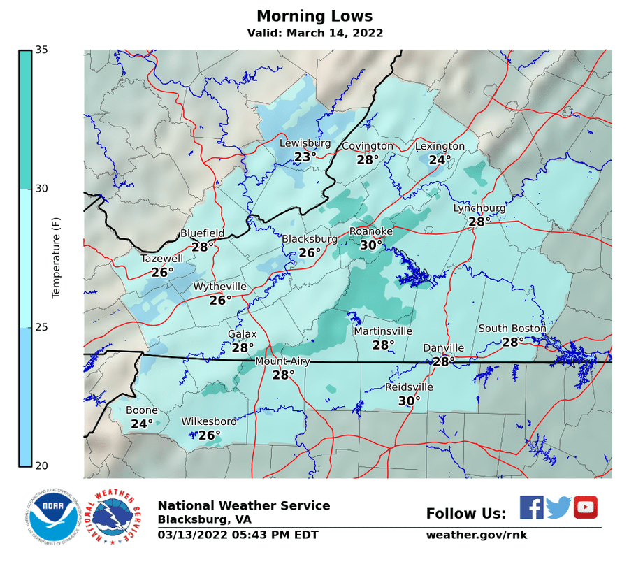 Blacksburg, VA - National Weather Service NOAA National Weather Service Blacksburg, VA. Virginia Severe Weather Awareness Week March 7-11, 2022; North Carolina Severe Weather Awareness Week: March 6-12, 2022